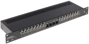TR-16/RACK przeznaczony jest do przesyłu sygnału wideo za pomocą skrętki komputerowej. Urządzenie dopasowuje impedancję kabla koncentrycznego 75Ω do impedancji przewodu symetrycznego zapewniając przesył sygnału wizyjnego do 400m (skrętka komputerowa 5 kategorii) oraz eliminuje zakłócenia niesymetryczne.