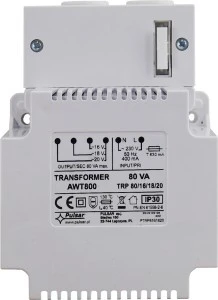 AWT800 to transformator operujący na zasilaniu 230 V. Oferuje trzy opcje napięcia wyjściowego na poziomie 16V/18V/20V. Spełniający wymagane normy gwarancji, AWT800 jest uniwersalnym rozwiązaniem z szerokimi możliwościami zastosowania. Standardowo prosty montaż na cztery wkręty dodatkowo uzupełniony jest możliwością podpięcia na szynę montażową TH35/TS35 (wymagany jest dodatkowy uchwyt AWO467).