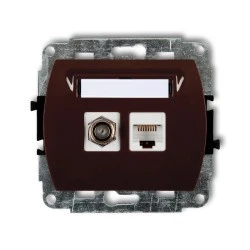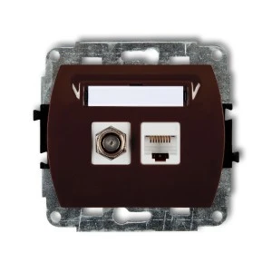 TREND Gniazdo antenowe pojedyncze typu F (SAT) + gniazda komputerowe pojedyncze 1xRJ45 kat. 5e 8‑stykowy brązowy 4GFK‑1
