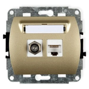 TREND Gniazdo antenowe pojedyncze typu F (SAT) + gniazda komputerowe pojedyncze 1xRJ45 kat. 5e 8‑stykowy złoty 6GFK‑1