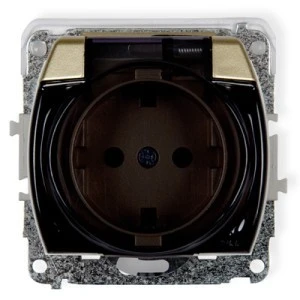TREND Gniazdo bryzgoszczelne z/u SCHUKO (klapka dymna) złoty 6GPB‑1sdp