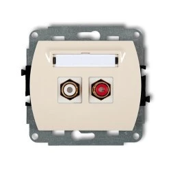 TREND Gniazdo podwójne RCA (typu cinch ‑ biały i czerwony, pozłacany) beżowy 1GRCA‑2