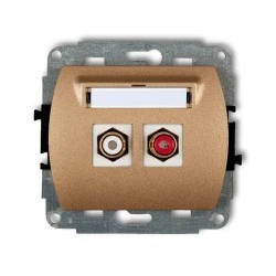 TREND Gniazdo podwójne RCA (typu cinch ‑ biały i czerwony, pozłacany) złoty metalik 8GRCA‑2
