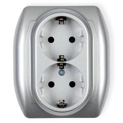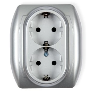 TREND Gniazdo podwójne z/u SCHUKO srebrny 5GP‑2sp