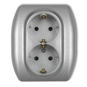 TREND Gniazdo podwójne z/u SCHUKO srebrny metalik 7GP‑2sp