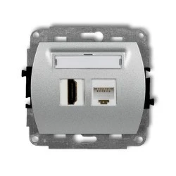 TREND Gniazdo pojedyncze HDMI + Gniazdo komputerowe pojedyncze 1xRJ45, kat. 5e, 8‑stykowy srebrny metalik 7GHK