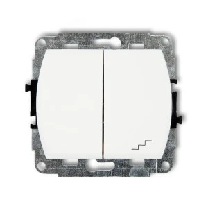MINI Mechanizm łącznika jednobiegunowego ze schodowym w stylu amerykańskim (dwa klawisze bez piktogramów,wspólne zasilanie) biał
