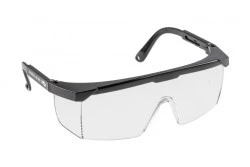 Soczewki okularów wykonane są z bezbarwnego poliwęglanu profilowanego z dodatkowymi osłonami, dzięki czemu zapewniają boczną ochronę oka i skroni. Oprawka i regulowane na długość zauszniki wyprodukowane zostały z nylonu w czarnym kolorze, co nadaje okularom modnego wyglądu. Okulary chronią przed odpryskami ciał stałych o niskiej energii powstałymi podczas szlifowania, wiercenia, cięcia, piłowania, kruszenia. Idealnie sprawdzą się w typowych pracach w przemyśle i usługach, budownictwie, warsztatach, leśnictwie, przy pracach gospodarczych i komunalnych. Produkt można stosować z okularami korekcyjnymi. Nie nadaje się do użytku podczas spawania.