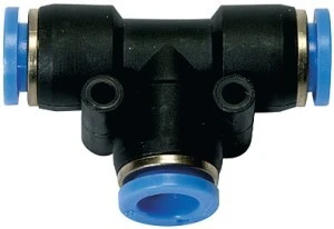 Trójnik pneumatyczny wtykowy typu T do węża fi 8 mm, tworzywo sztuczne