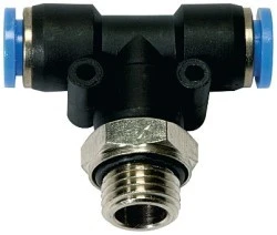 Trójnik pneumatyczny wtykowy typu T G 3/8 GZ do węża fi 8 mm, tworzywo sztuczne