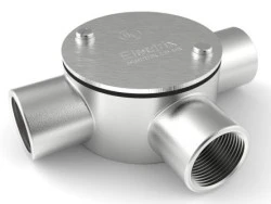 Okrągłe skrzynki. Standardowe pudełka ze stali nierdzewnej (316 mm) ze standardową pokrywą lid, śrubami i uszczelką, zapewniające ochronę IP67. Każda obudowa posiada również nagwintowany otwór i śrubę uziemiającą w podstawie oraz wykończenie z tworzywa elektrostatycznego. UL Klasyfikowane zgodnie z europejską normą EN50086