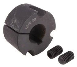 2 wkręty dociskowe i instrukcje montażu. Klucze to brytyjska metryka BS4235: Pt. 1: 1972 i zgodne z zaleceniami ISO. W przypadku gdy kluczyk ma być użyty, powinien być równoległy i boczny z TOP. Głębokość wpustów jest mierzona w ŚRODKU. Tuleje stożkowe. Tuleje stożkowe pozwalają na łatwiejsze i szybsze przymocowanie do wałów napędowych Kompatybilny z kołami pasowymi i kołami zębatymi stożkowymi Zastosowano w nim unikalną konstrukcję z 4 otworami zapewniającą właściwe dopasowanie