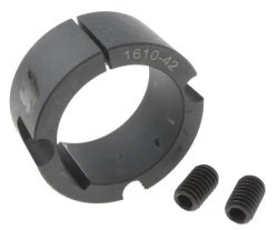 2 wkręty dociskowe i instrukcje montażu. Klucze to brytyjska metryka BS4235: Pt. 1: 1972 i zgodne z zaleceniami ISO. W przypadku gdy kluczyk ma być użyty, powinien być równoległy i boczny z TOP. Głębokość wpustów jest mierzona w ŚRODKU. Tuleje stożkowe. Tuleje stożkowe pozwalają na łatwiejsze i szybsze przymocowanie do wałów napędowych Kompatybilny z kołami pasowymi i kołami zębatymi stożkowymi Zastosowano w nim unikalną konstrukcję z 4 otworami zapewniającą właściwe dopasowanie