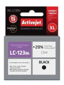 Tusz Activejet AB‑123BN (zamiennik Brother LC123BK/121BK Supreme 15 ml czarny)
