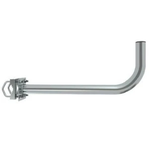 Uchwyt kątowy, łatwy w montażu, wykonany ze stali. Uchwyt cechuje wysoka jakość oraz estetyka wykonania. Dzięki zastosowaniu tej technologii uchwyty są odporne na zniszczenia i wytrzymałe na rdzę, co gwarantuje satysfakcję z zakupionego towaru. Kapturek z tworzywa sztucznego zapobiega przedostawaniu się wody do wnętrza. Polecany do montażu czasz satelitarnych oraz anten telewizji naziemnej. Dostępny również w innym rozmiarze.