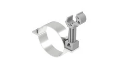 Służy do mocowania drutu odgromowego do rury spustowej. Kolor plastiku szary, czarny i ceglasty*. Należy stosować tylko z drutem odgromowym o przekroju O 8