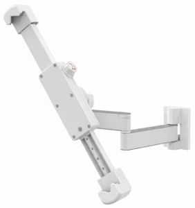 Barkan T72 to regulowany uchwyt ścienny do tabletu, który oferuje szerokie możliwości ustawienia ekranu. Przegubowa konstrukcja oraz obrotowa głowica pozwalają na regulację kąta nachylenia od –90° do +20°, skręt ±90°/180°, obrót ekranu 360° oraz odsunięcie od ściany w zakresie 60-290 mm. Dzięki temu zawsze uzyskasz optymalną widoczność ekranu.