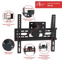 UCHWYT DO TV LCD/LED 22‑47 30KG AR‑49 ART reg. pion i poziom