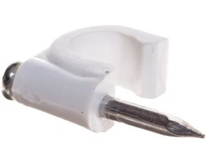 Uchwyty kablowe z wbitym gwoździem hartowanym typu "FLOP" do kabli o przekroju okrągłym i płaskim umożliwiają prosty i szybki montaż przewodów do ścian budynków. Uchwyty kablowe z gwoździem typu FLOP, przeznaczone są do mocowania przewodów lub poszczególnych żył kabla do podłoża za pomocą gwoździa.