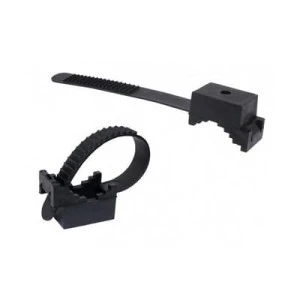 Wykonany z polipropylenu uchwyt UP składa się z paska o ząbkowanym profilu oraz siodełka mocującego.