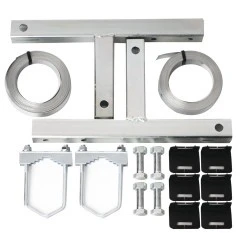 Dla zapewnienia łatwego montażu anteny zestaw zawiera 2 stalowe taśmy o długości 7 m, 4 śruby do napinania taśm oraz 6 narożników ochronnych.