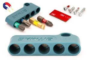 Można go z powodzeniem używać do długich bitów, przedłużek, wierteł itp. Magnesy są tak mocne że nawet cięższe rzeczy zwykle nie wypadają z niego nawet przy wstrząsach i trzymaniu do góry nogami. Bity siedzą luźno w dziurkach, nie są wciskane. Zawsze pod ręką i zawsze bardzo łatwe do wymiany nawet w rękawicach. Są równie mocno osadzone i łatwe do wymiany w ekstremalnych warunkach np. na dużym mrozie, nie przymarzają. Magazynek jest bardzo łatwy do zamontowania w różnych pozycjach tak aby praca przebiegała bardzo wygodnie nie zależnie co się do niego włoży. Specjalnie dobrany kompozytowy materiał jest najwyższej jakości i wytrzymałości.