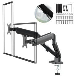 - Dwa niezależne ramiona ze sprężynami gazowymi umożliwiające płynną regulację wysokości każdego monitora