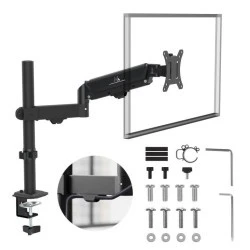 Sercem uchwytu MC-135 jest nowoczesna sprężyna gazowa, która umożliwia płynną i lekką regulację wysokości monitora. Dzięki niej możesz z łatwością unieść lub opuścić ekran jednym ruchem dłoni, bez użycia siły i bez potrzeby luzowania śrub. Mechanizm gazowy utrzymuje monitor dokładnie w wybranej pozycji, gwarantując stabilność i precyzję działania. Pozostałe elementy uchwytu pozwalają na niezależne dostosowanie wysokości, kąta nachylenia, obrotu oraz wysunięcia ramienia, co razem tworzy w pełni ergonomiczne i komfortowe stanowisko pracy.