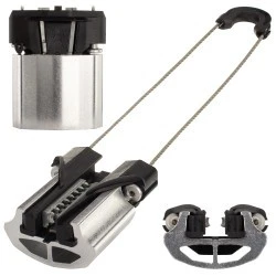 - Elementu z tworzywa termoplastycznego oraz stopów cynku w postaci wewnętrznych klinów blokujących