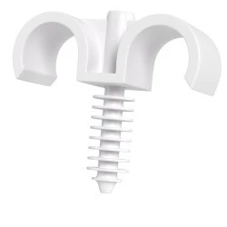 UCHWYTY PODWÓJNY TYPU RING do rur o przekroju Ø 22. Do mocowania wszystkich typów RUR: PCV, PESCHEL, CU / Kolor BIAŁY, średnica wiertła Ø 8. Nie potrzebuje wkręta i kołka. Mocowanie Szybki Montaż - PRZYBIJANIE. Tależyki wokół trzpienia mocno zacieśniają się w otworach - Odporne na wyrywanie.