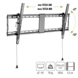 Wieszak TV Techly ICA-PLB 590, P/N: 105421 – Uchwyt Ścienny do Telewizora 43” - 90” LCD/LED, do 70kg, Slim 49mm, Uchylny -12° do +3°, Blokada Zapadkowa