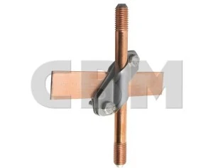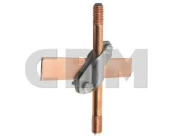 Uchwyt skośny uziom - bednarka z dwiema śrubami M8 umożliwia łączenie uziomu z bednarką. Uchwyt standardowo wyposażony w przekładkę zapobiegającą powstawaniu korozji między miedzią a cynkiem w przypadku łączenia tych różnych metali.