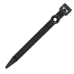 Uchwyt paskowy. Wykonany z polipropylenu uchwyt UP-z składa się z paska zaciskowego o ząbkowanym profilu oraz otworu do mocowania uchwytu do podłoża za pomocą gwoździa/wkrętu. Służy do mocowania przewodów lub ich wiązki. Odporność na promieniowanie UV pozwala na instalację w nasłonecznionych miejscach. Cena dotyczy opakowania 50 szt.