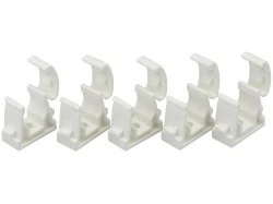 Uchwyty zamykane UZ służą do mocowania rur ochronnych RLm. Wykorzystywane są również do mocowania peszli. Uchwyt można przytwierdzić do podłoża za pomocą wkrętu, kołka itp. (brak w zestawie).