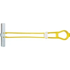 Nie potrzeba żadnych dodatkowych narzędzi do osadzania. Stabilna część metalowa zatrzaskuje się w wolnej przestrzeni za materiałem (min. 51 mm). Po odciągnięciu BT i jednoczesnym wsunięciu plastikowej podkładki w wywiercony otwór zakłada się zaślepkę. Odłamanie pozostałych plastikowych nóżek zgodnie z instrukcją. Montaż za pomocą metrycznej śruby do wewnętrznego gwintu metalowej części za płytą.