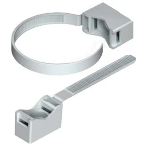 Uchwyt zaciskowy paskowy UZP 13-32 szary, przeznaczony do zamocowania rur prostych, karbowanych lub innych elementów o średnicach od 13 do 32 mm. Może być montowany na dowolnej powierzchni przy użyciu dedykowanego lub dowolnego, właściwego do powierzchni, na której będzie montowany uchwyt.