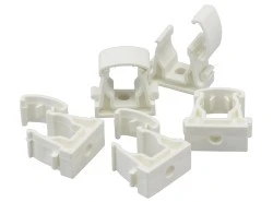 Uchwyty zamykane UZ służą do mocowania rur ochronnych RLm. Wykorzystywane są również do mocowania peszli. Uchwyt można przytwierdzić do podłoża za pomocą wkrętu, kołka itp. (brak w zestawie). Uchwyty sprzedawane są w kompletach po 5 sztuk.