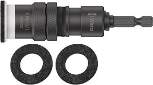 Uchwyt do bitów 881/4/1 ze zmiennym ograniczeniem głębokości wkręcania i pierścieniem filcowym zapewnia równomierną głębokość pogłębiania i chroni powierzchnie przed śladami szlifowania.
