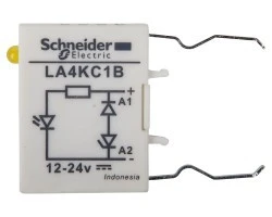 TeSys K suppressor module, for contactors LP.K and control relays CA3KN, CA4KN. Clip-on mounting on front of contactor (no tools required, polarised component), it incorporates a LED indicator.
