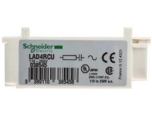 TeSys D suppressor module, for contactors LC1D09-D38, LC1DT20-DT40 and control relays CAD. Side clip-on mounting, overall size of the contactor is unchanged. Green Premium compliant (RoHS/REACh).