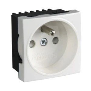 Gniazdo K45 pojedyncze z uziemieniem w kolorze białym. Tworzywo nieco się błyszczy a sam montaż jest łatwy