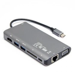 Adapter wieloportowy USB-C™ HDMI 4k 30 Hz, USB, CR, RJ45, PD, alum., srebrny, 76788