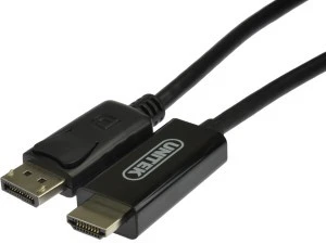 Wysokiej jakości przewód marki UNITEK umożliwiający podłączenie urządzenia z gniazdem DisplayPort (np. komputera) do urządzenia z gniazdem HDMI (np. projektora lub monitora).