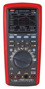 UT181A to uniwersalny miernik cyfrowy z funkcją TRUE RMS z kolorowym 4.5-cyfrowym wyświetlaczem, który umożliwia funkcję rysowania wykresu trendu zmian czasowych. Urządzenie pomoże dokonać szybkich pomiarów wszystkich podstawowych wielkości elektrycznych oraz zapamiętać 20.000 odczytów. Dodatkowo dane można z łatwością zgrać na komputer za pomocą kabla USB. Miernika UT181A można używać bezpiecznie w każdym warsztacie. Dzięki normie IP65 urządzenie jest odporne na wszelkie zalania wodą oraz wnikanie pyłu czy kurzu.