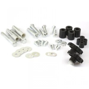Zawiera bogatą gamę śrub, podkładek, dystansów oraz kołki i śruby do montażu w ścianie