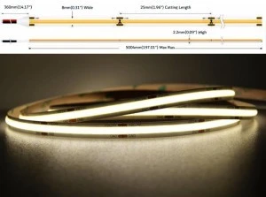 Profesjonalna taśma LED typu COB, 8W 320 chips/m, CRI >90, 12V, biala neutralna, 4000K, IP20, 50m