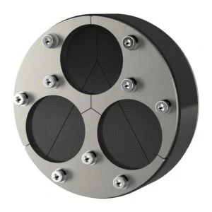 Uszczelnienie wykonane w w wersji dzielonej HRD dla średnicy otworu Ø125mm, przeznaczone do wykonywania ciśnieniowych przejść gazo i wodoszczelnych dla rur, przewodów i kabli przechodzących przez przegrody budowlane. Uszczelnienie składa się z pierścienia EPDM wraz z zaślepkami oraz płyt dociskowych, śrub, nakrętek i podkładek ze stali nierdzewnej V2A.