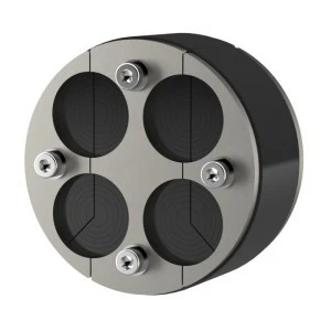 Uszczelnienie wykonane w w wersji dzielonej HRD dla średnicy otworu Ø100mm, przeznaczone do wykonywania ciśnieniowych przejść gazo i wodoszczelnych dla rur, przewodów i kabli przechodzących przez przegrody budowlane. Uszczelnienie składa się z pierścienia EPDM wraz z zaślepkami oraz płyt dociskowych, śrub, nakrętek i podkładek ze stali nierdzewnej V2A.