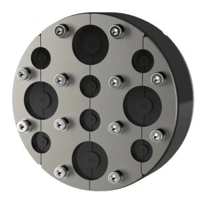 Uszczelnienie wykonane w w wersji dzielonej HRD dla średnicy otworu Ø150mm, przeznaczone do wykonywania ciśnieniowych przejść gazo i wodoszczelnych dla rur, przewodów i kabli przechodzących przez przegrody budowlane. Uszczelnienie składa się z pierścienia EPDM wraz z zaślepkami oraz płyt dociskowych, śrub, nakrętek i podkładek ze stali nierdzewnej V2A.