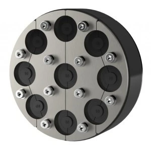 Uszczelnienie wykonane w w wersji dzielonej HRD dla średnicy otworu Ø150mm, przeznaczone do wykonywania ciśnieniowych przejść gazo i wodoszczelnych dla rur, przewodów i kabli przechodzących przez przegrody budowlane. Uszczelnienie składa się z pierścienia EPDM wraz z zaślepkami oraz płyt dociskowych, śrub, nakrętek i podkładek ze stali nierdzewnej V2A.